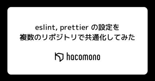 hacomono フロントエンド テックリードのみゅーとん(@_mew_ton)です。 開発メンバーが増え、プロジェクトがどんどん増えてきました。 そろそろ eslint, prettier をそれぞれのプロジェクトでバラバラに管理するのに疲弊してきたので、 ここで一気に設定を揃…